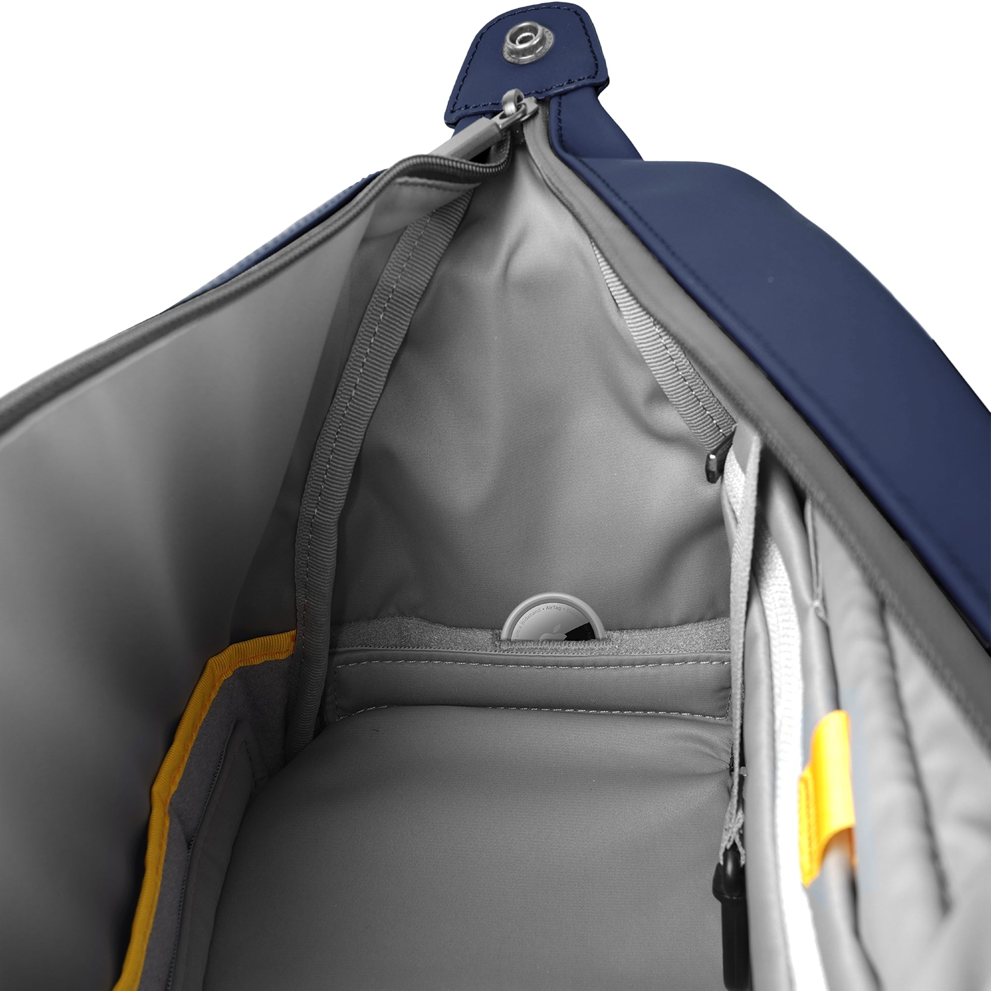 メイン収納部には、機材をしっかり守るEVA素材のスマートディバイダーを採用。ミラーレスカメラ1〜2台に加え、複数のレンズやアクセサリーを効率的に収納できます。さらに、仕切りを取り外せば日常使いのバッグとしても活用でき、シーンに応じて自由に形を変えられる柔軟な構造です。