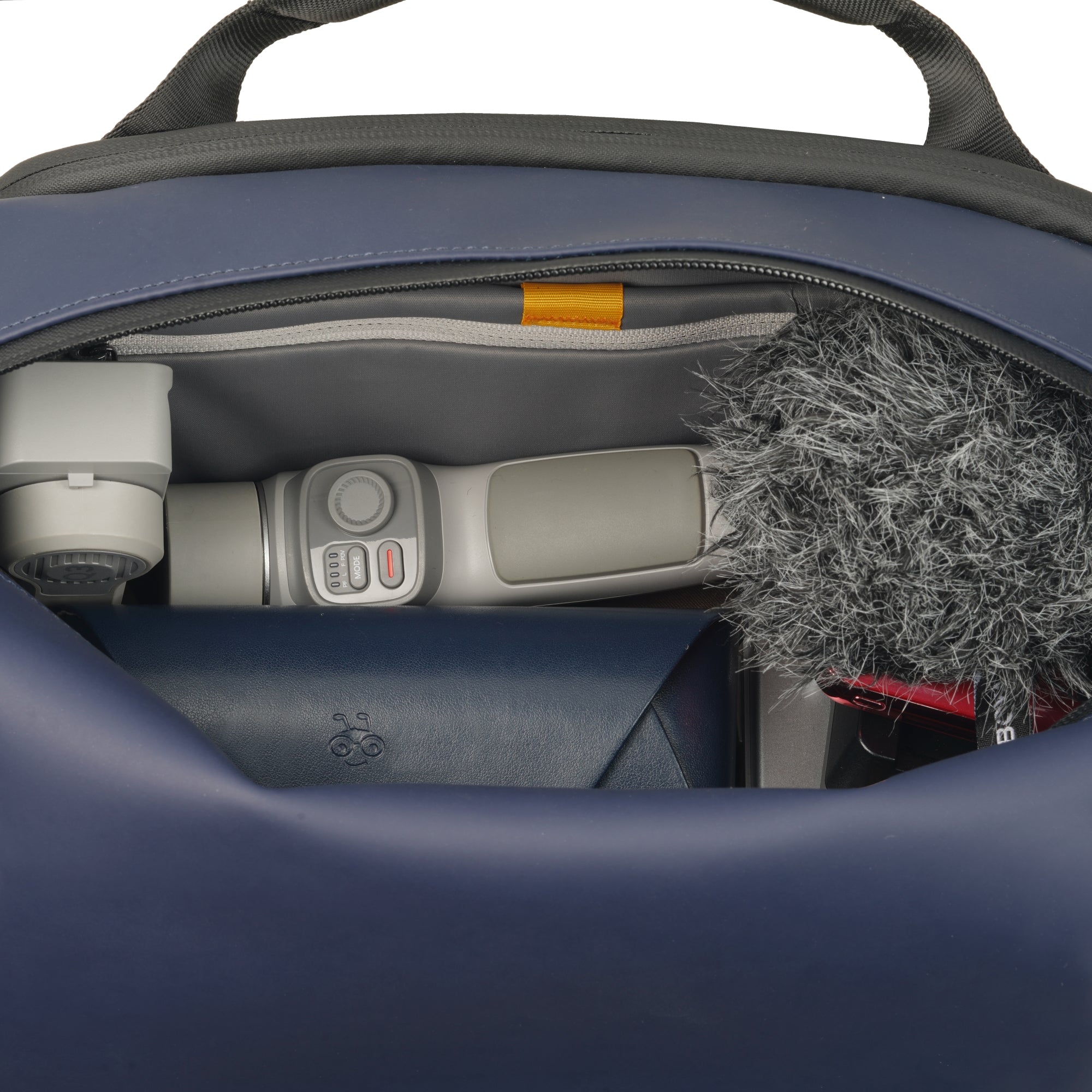 撮影機材とは別に収納できるため、バッグ内での干渉や衝撃を防ぎ、大切なデバイスをしっかり守ります。
