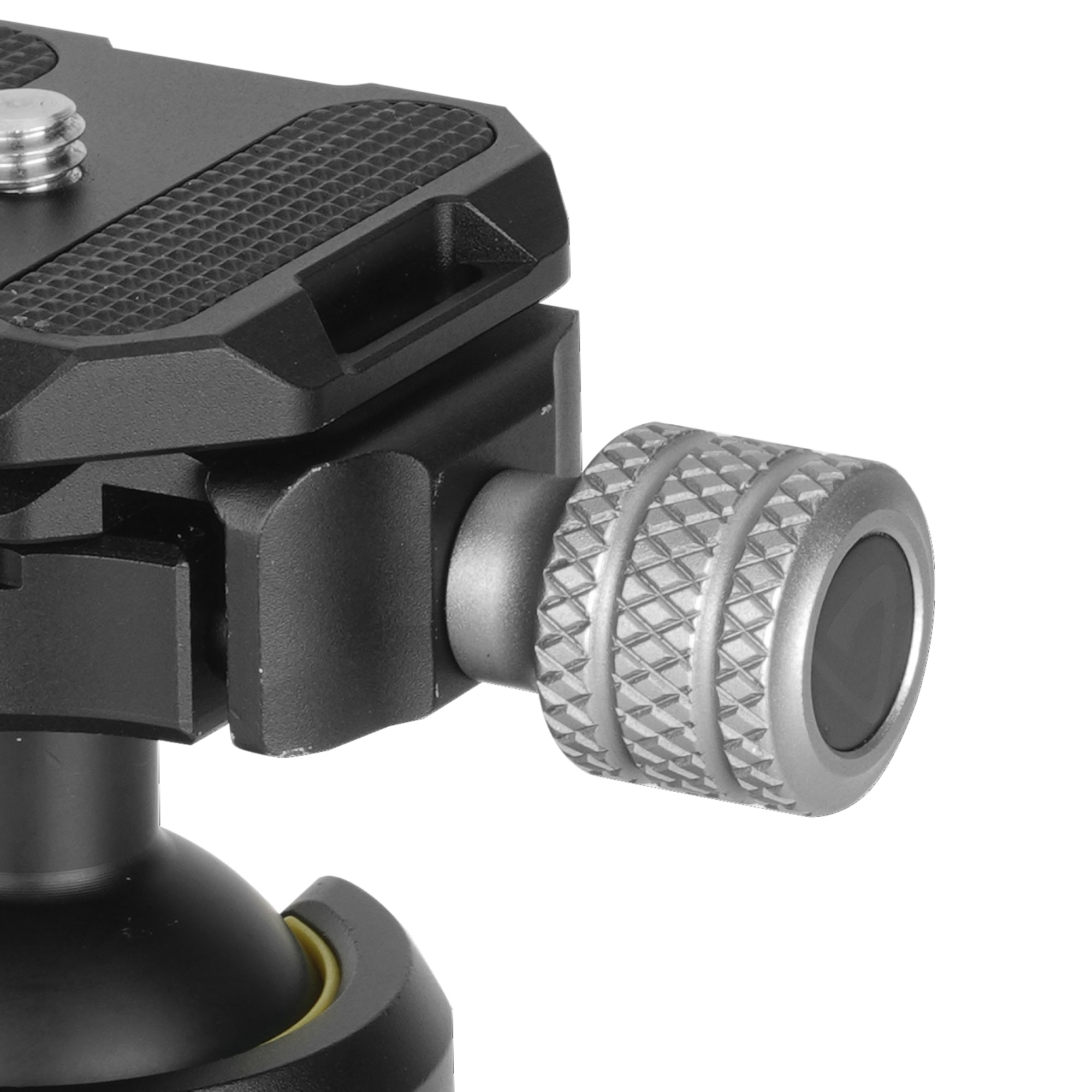 ボールの固定と解除を行う主要操作部。片手で素早く確実にロックでき、構図をしっかり保持します。 -