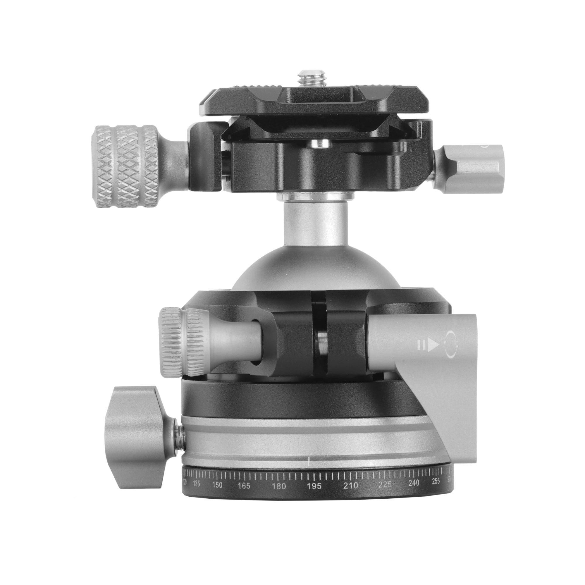 付属雲台の心臓部には、アルマイト(酸化処理)仕上げを施したセンターボールを採用。 ボール内部は中空構造となっており、軽量化を実現しながらも高い保持力を維持します。