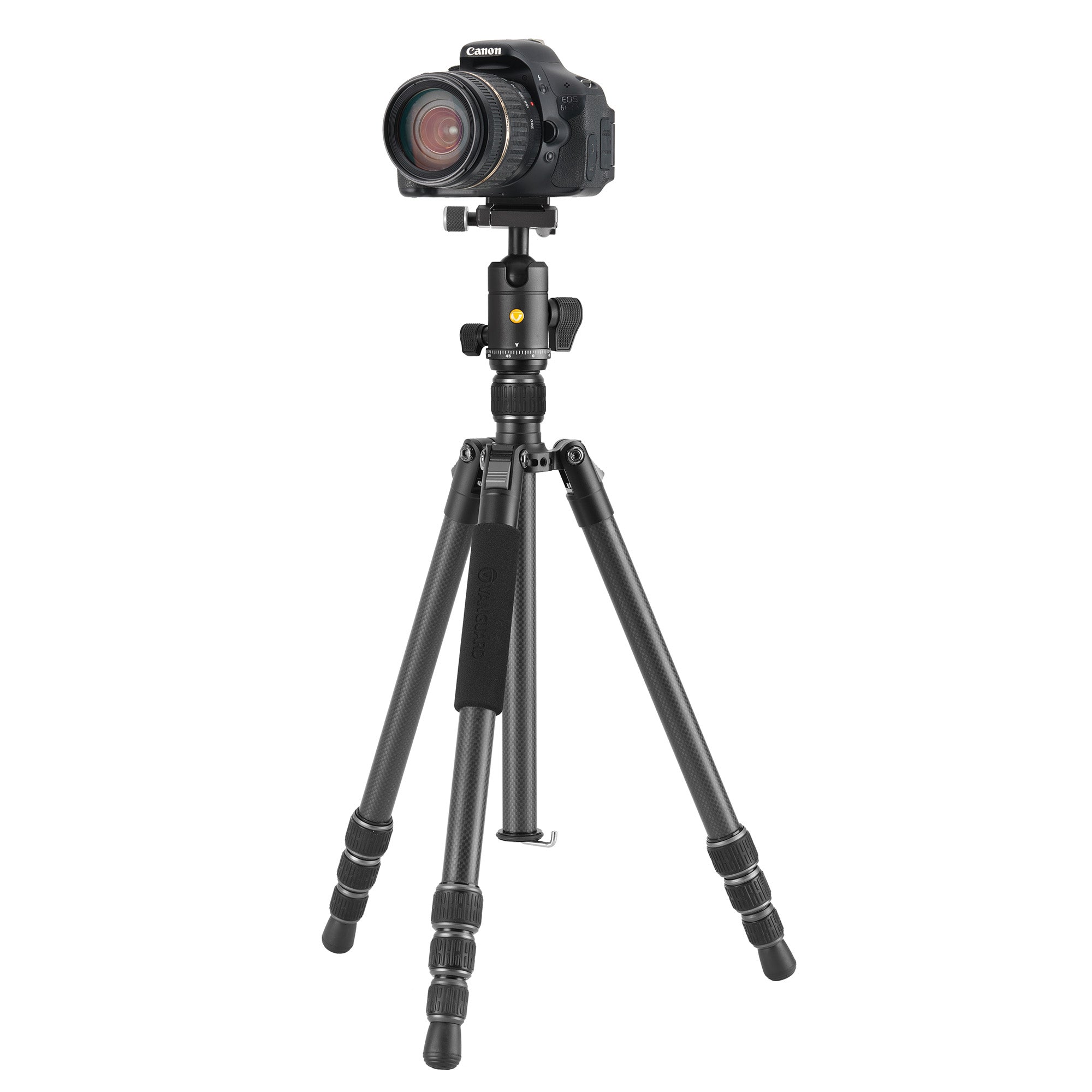 さらに、この三脚には、アルカスイス互換で取り外しが可能な自由雲台が付属しており、カメラを素早く自由な角度に固定できます。