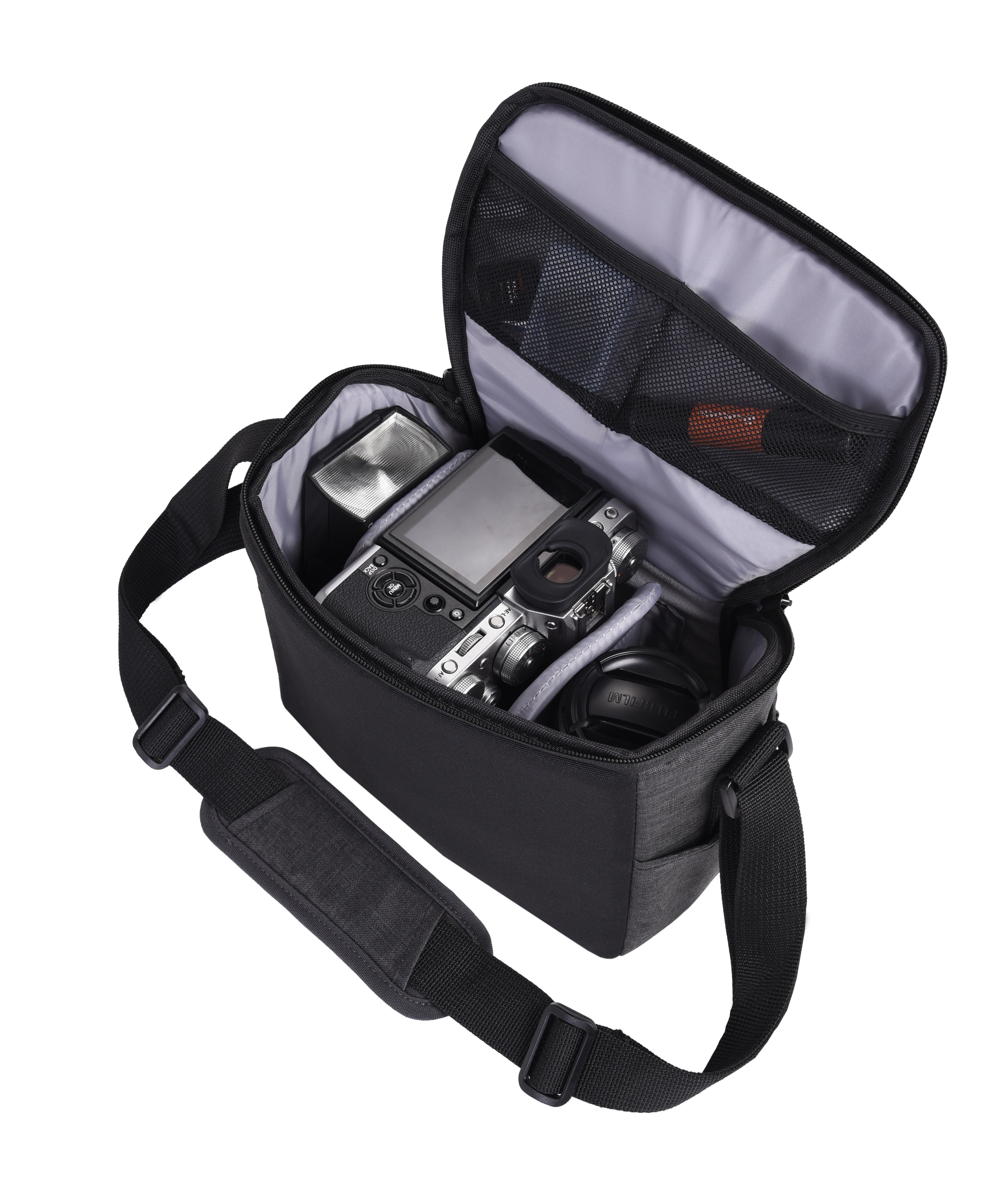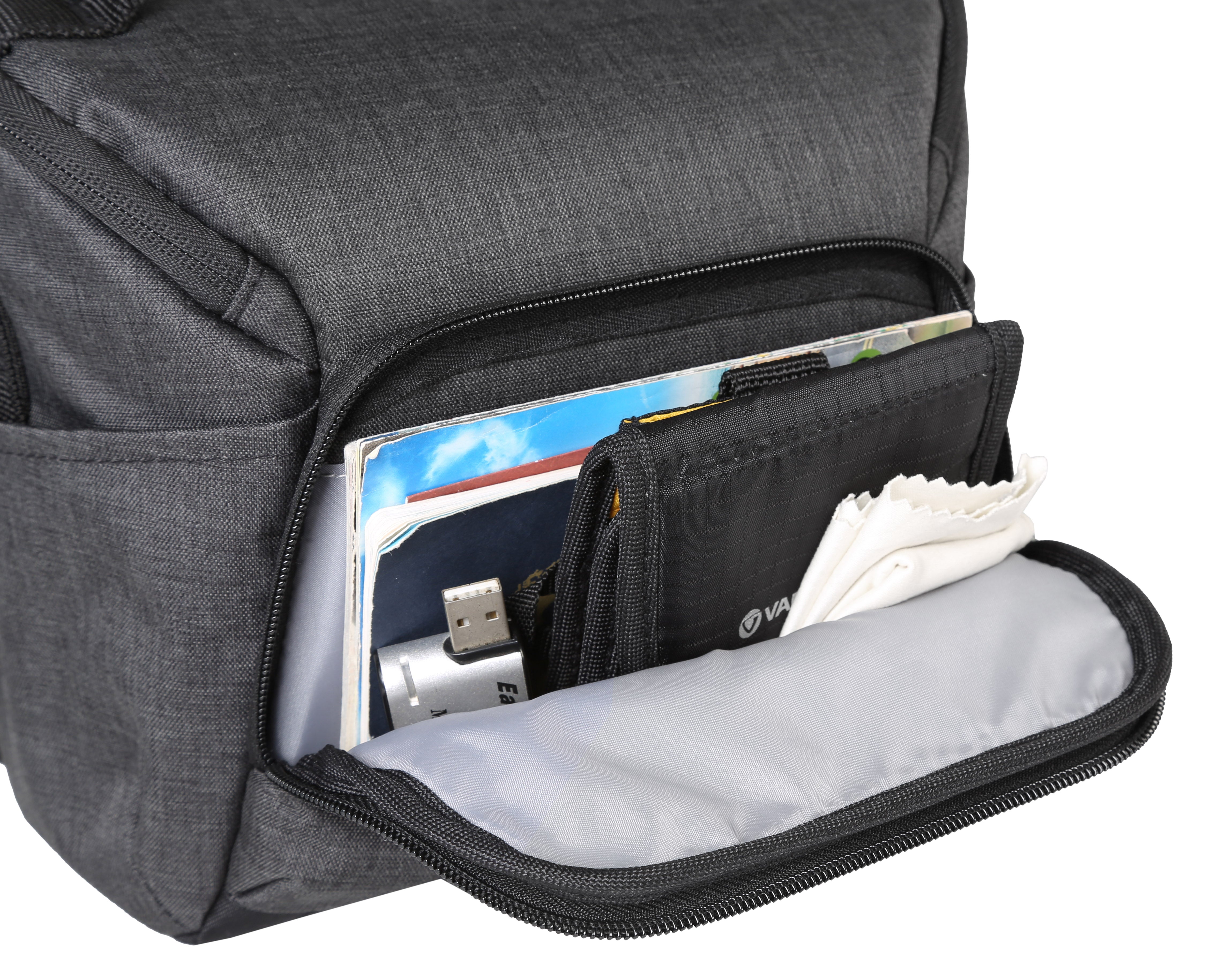 VESTA ASPIRE 15は、キットレンズ、フラッシュ、アクセサリーを備えたDSLRやCSCに最適なコンパクトでスタイリッシュなショルダーバッグです。また、サイドポケットにVESTA COLLECTIONのVESTA TT1テーブル三脚を収納することもできます。