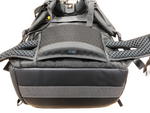 - A. カメラに装着した状態で超望遠レンズ(800mm)と中望遠レンズ(300mm)を同時に収納可能な大容量カメラバッグです。カメラ本体2台と最大5本のレンズ、ジンバルやドローン、16インチノートPCも収納できます。