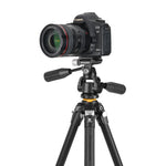 写真撮影だけでなく動きのある動画撮影や望遠レンズでの撮影にも最適です。独立したパノラマノブと水準器を備えているため、スムーズなパン移動が可能です。