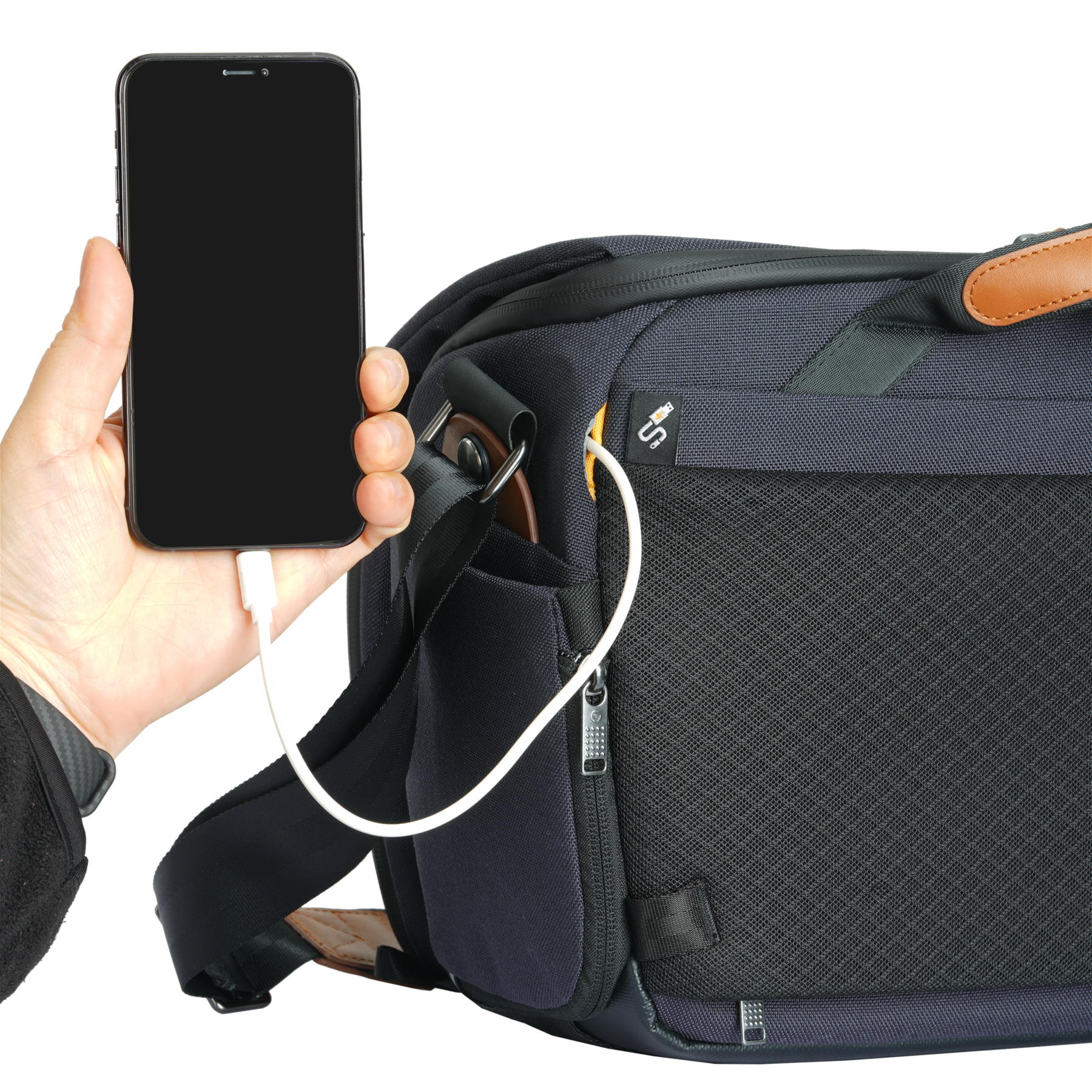 このポーチは、SDカード、バッテリー、ケーブルなどの小さなアクセサリーを収納するのに最適で、バッグの外側に取り付けて持ち運びも可能です。また、取り外してクロスボディバッグとしても使用できるため、撮影時の自由度を格段に高めます。