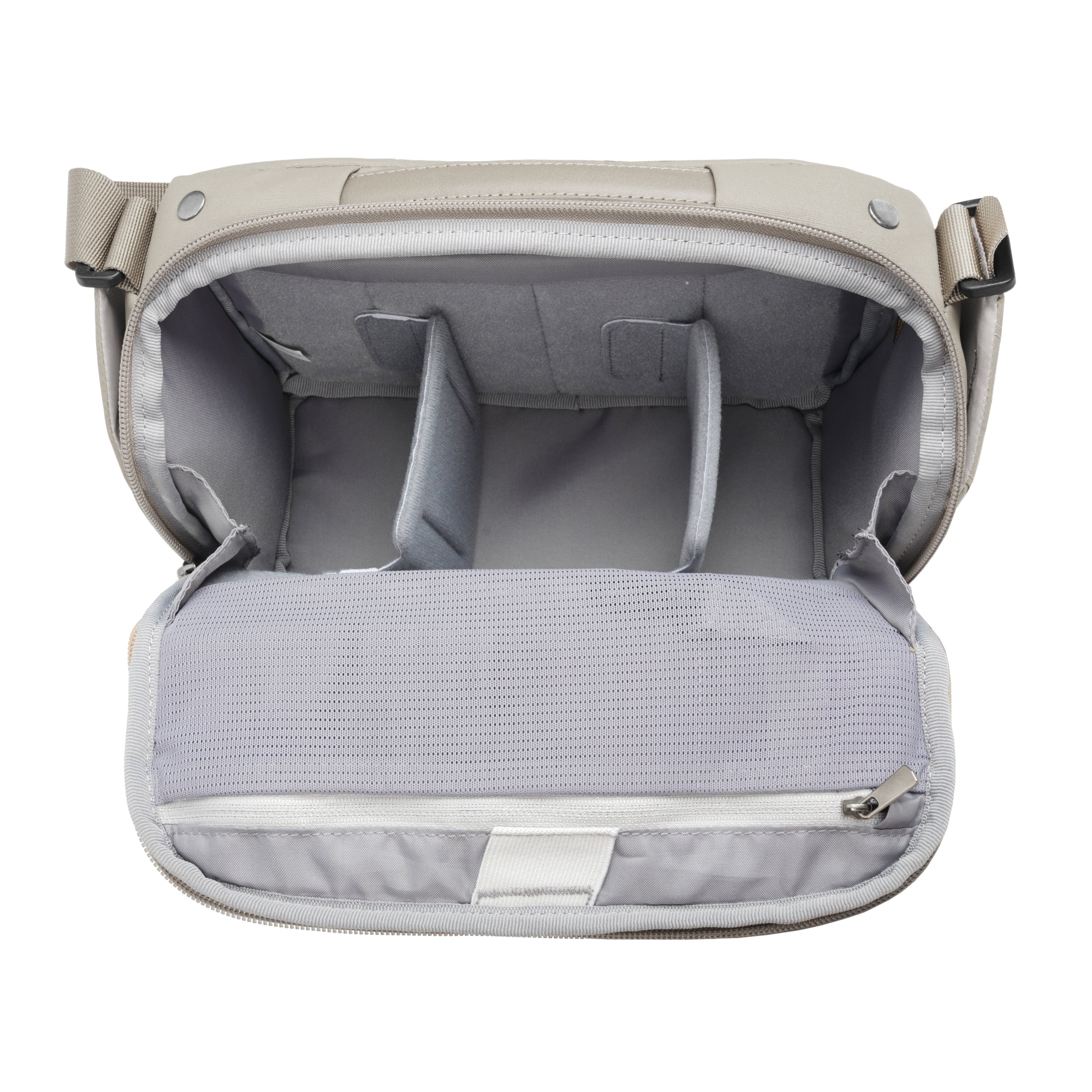 VEO METROショルダーバッグは、都会的でスタイリッシュなデザインを備え、ミラーレスカメラなどのコンパクトな撮影機材を快適に持ち 運べるよう設計されています。