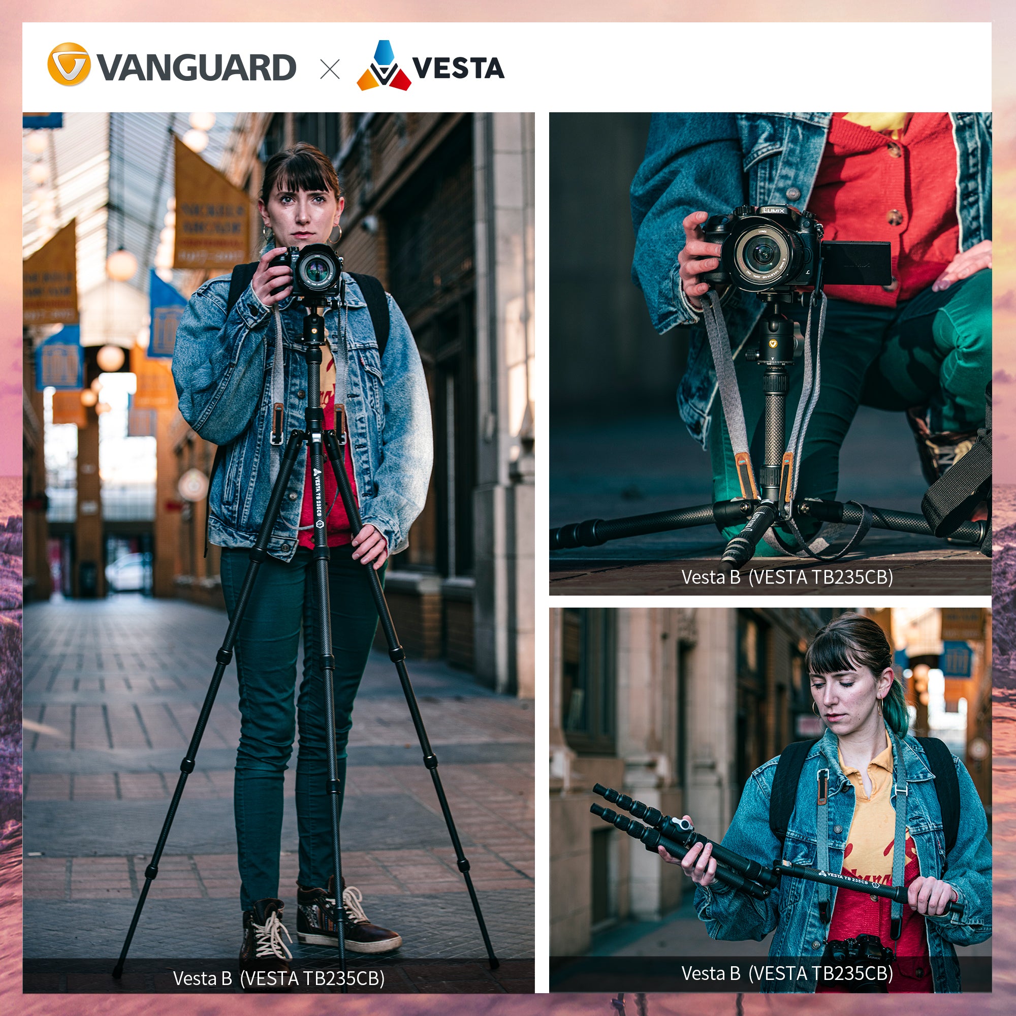 VESTA TB三脚は、基本機能と高度な機能の両方を備えたコストパフォーマンスに優れた三脚です。アルミまたは軽量な カーボンから素材が選べ、コンパクトな持ち運びに折りたためる5段及び4段対応の反転式三脚です。